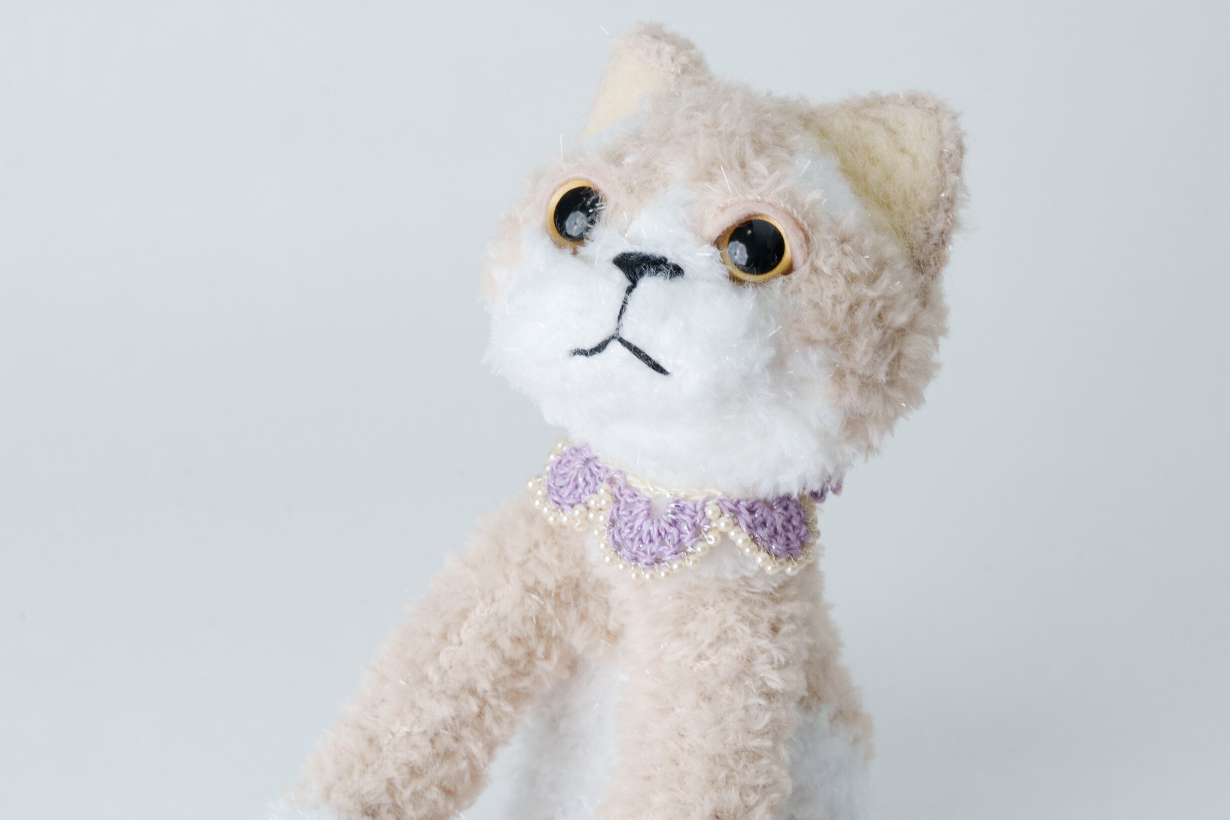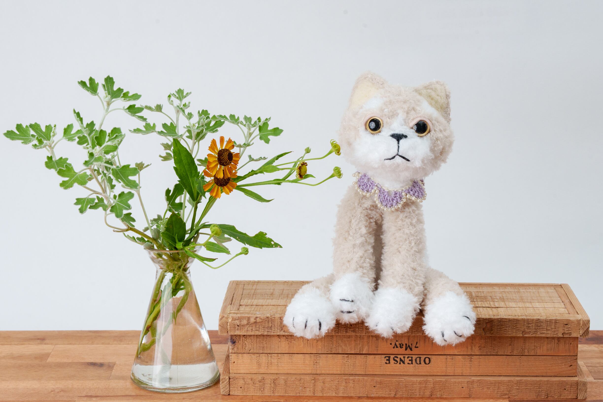 柔らかな構造が特徴のマルイネコのあみぐるみは、クタッとネコらしいポーズでもお楽しみいただけます。