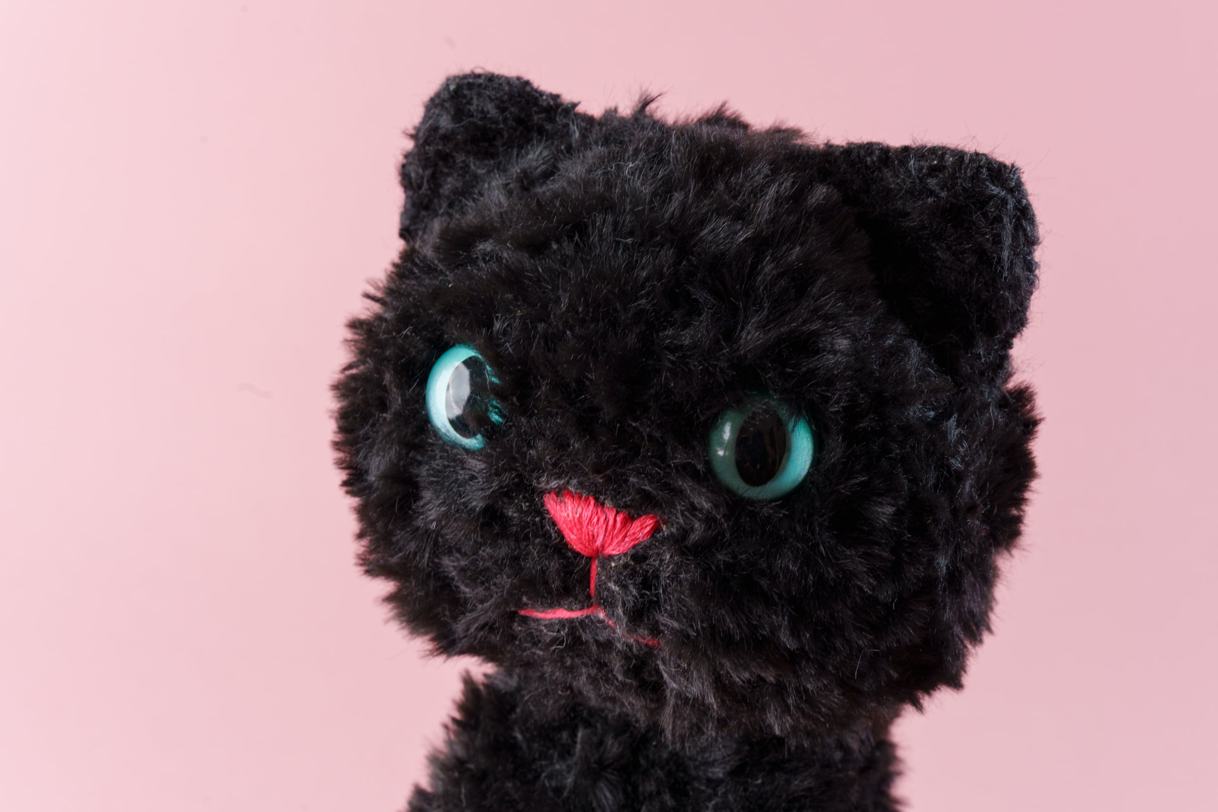 お鼻とお口は愛らしいローズピンクの刺しゅう糸で、少し笑顔を浮かべたような表情をつけました。