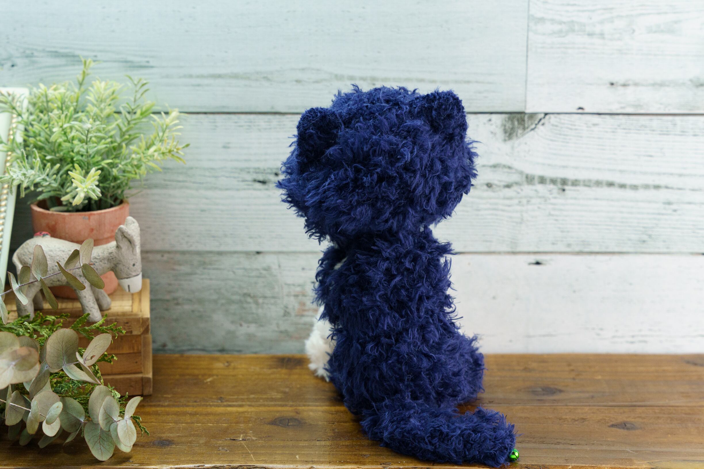 長めの毛足でトロけように柔らかい繊細なファーヤーンを使った手編みのあみぐるみの<ブルーノ>