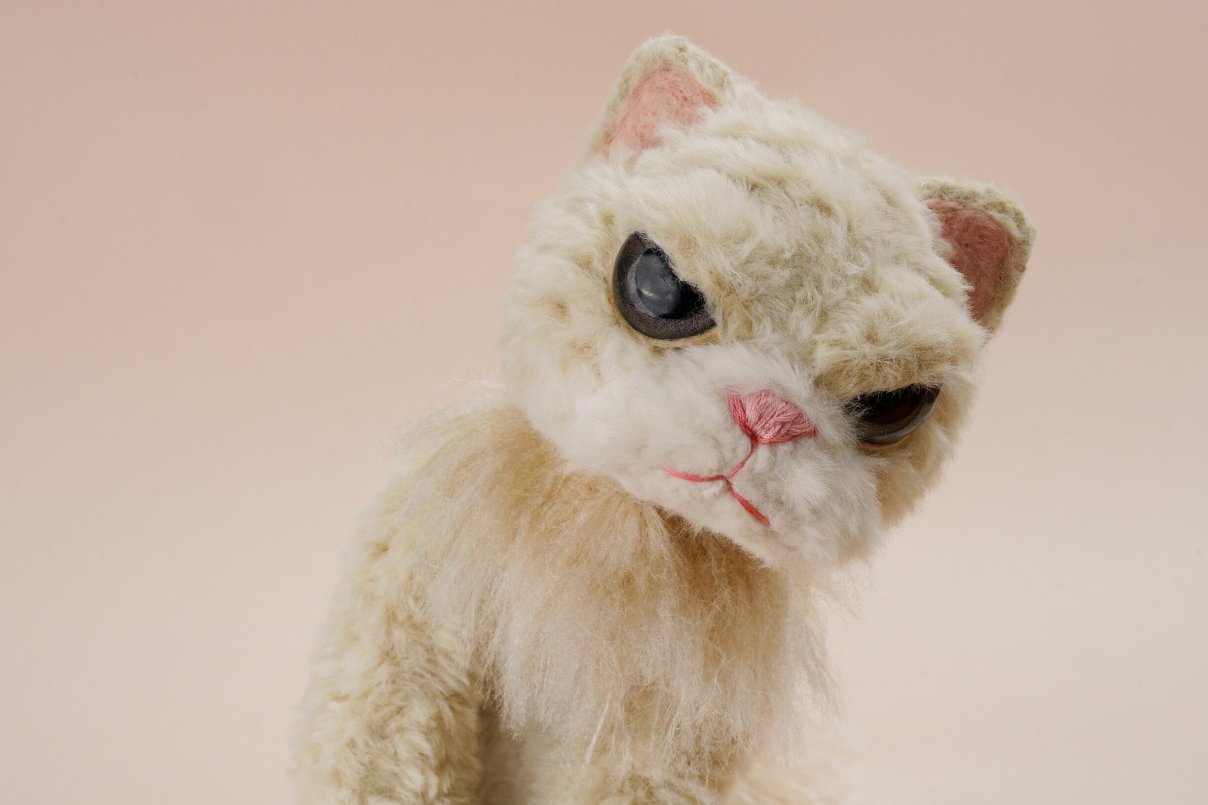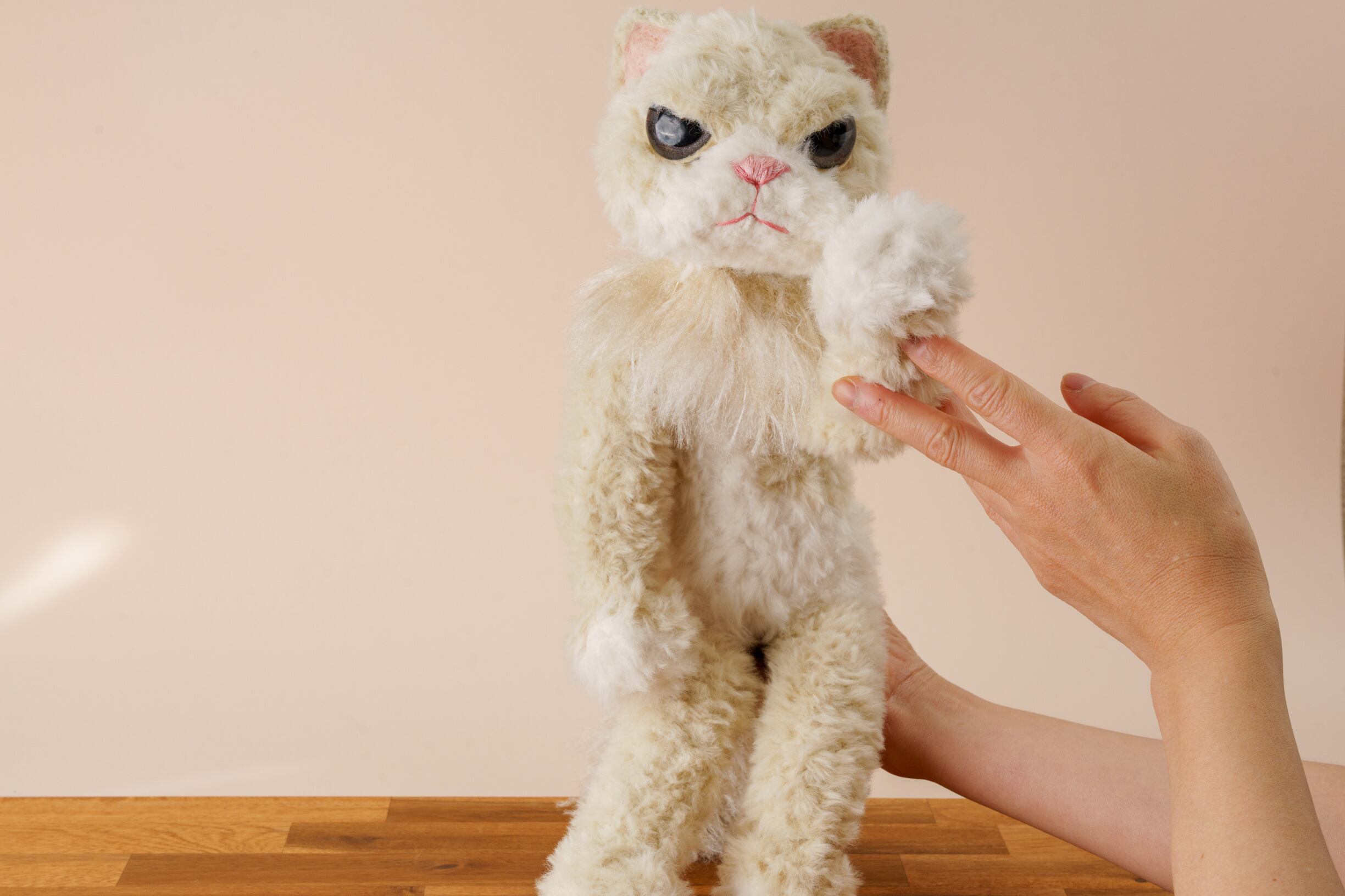 お尻にウェイトビーズが入っているので、キチンとお座りしたポーズからクタッとネコらしいポーズで置いてみたり、腕に抱えてホンモノの猫ちゃんのように愛でてお楽しみください。