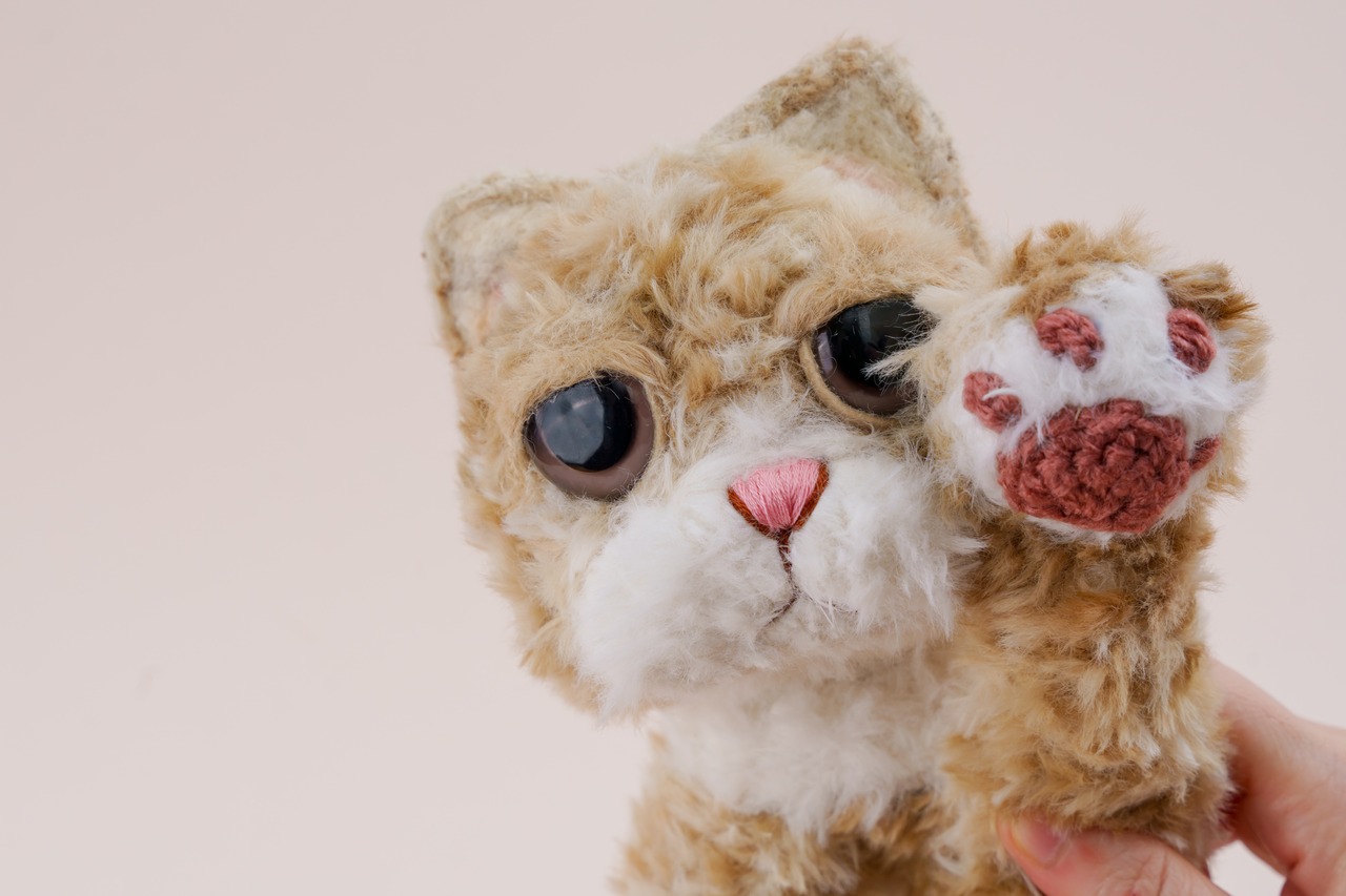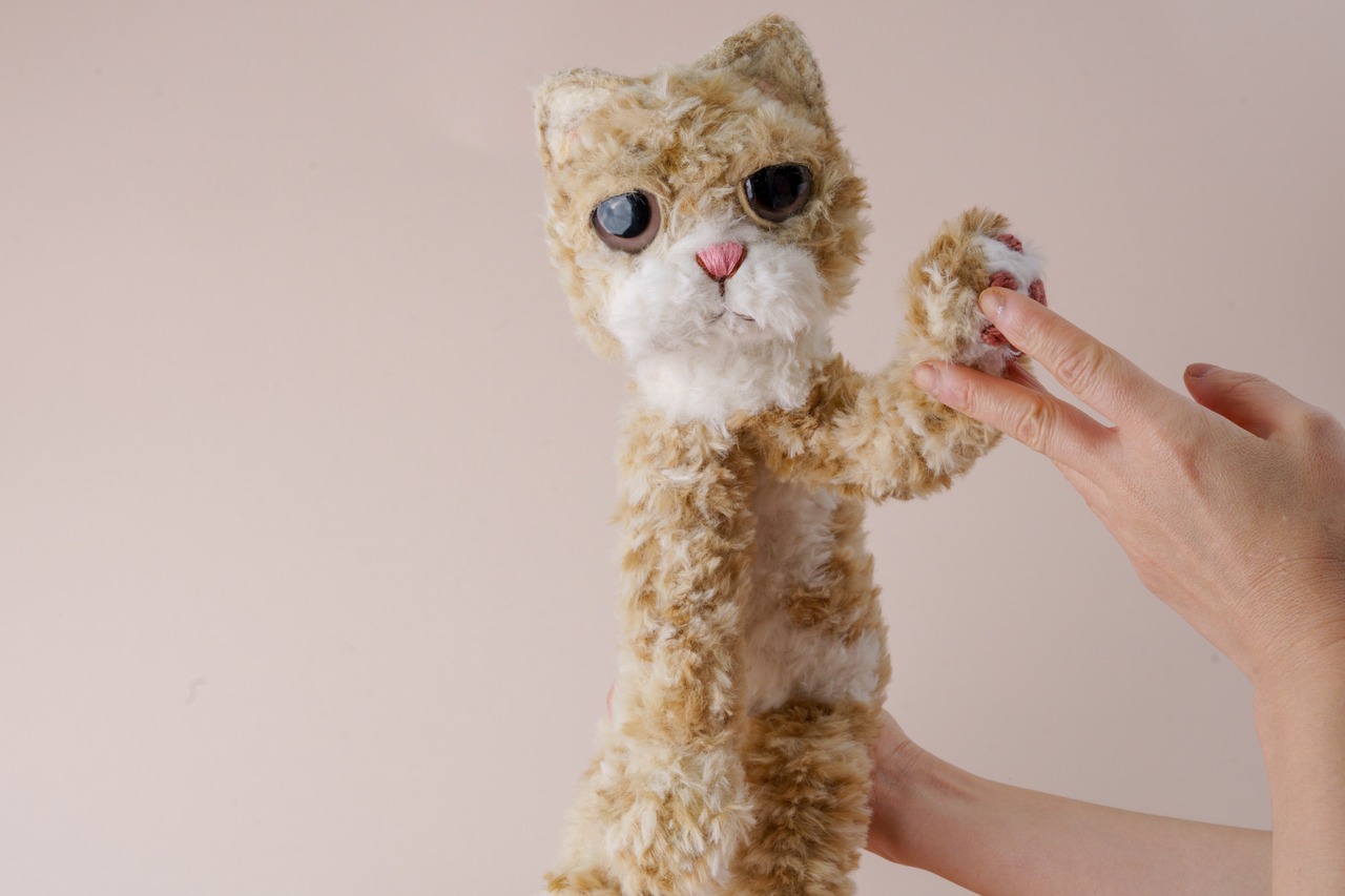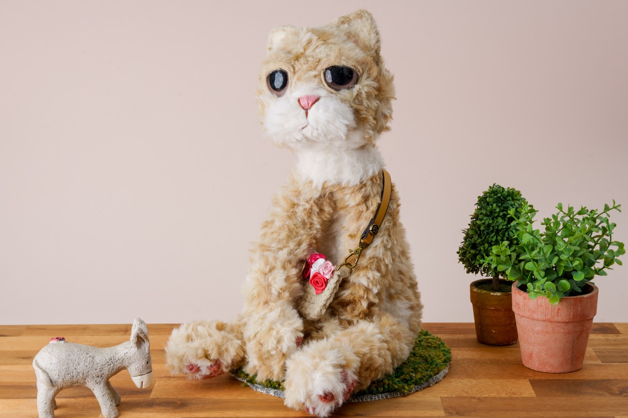 お尻にウェイトビーズが入っているので、キチンとお座りしたポーズからクタッとネコらしいポーズで置いてみたり、腕に抱えてホンモノの猫ちゃんのように愛でてお楽しみください。