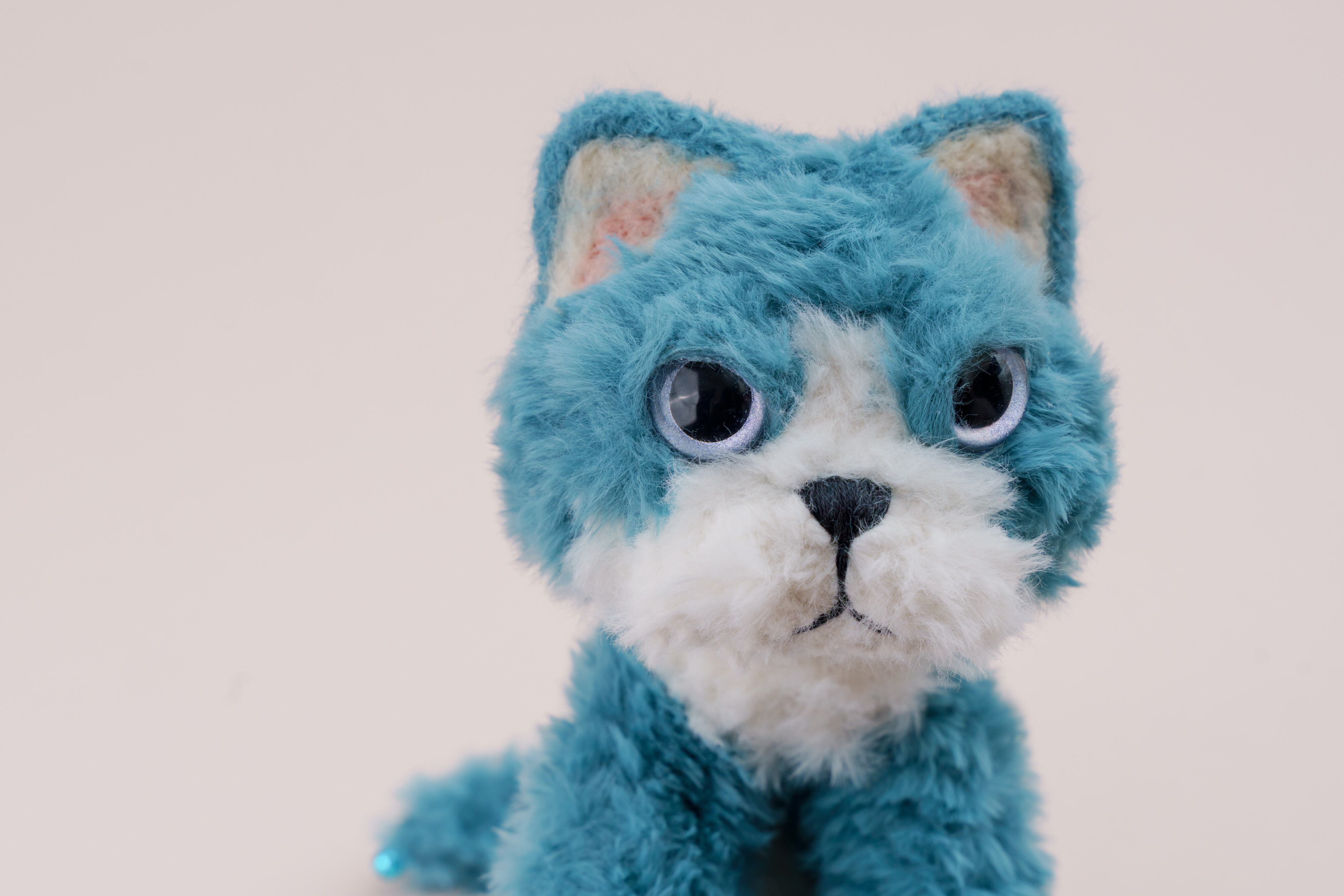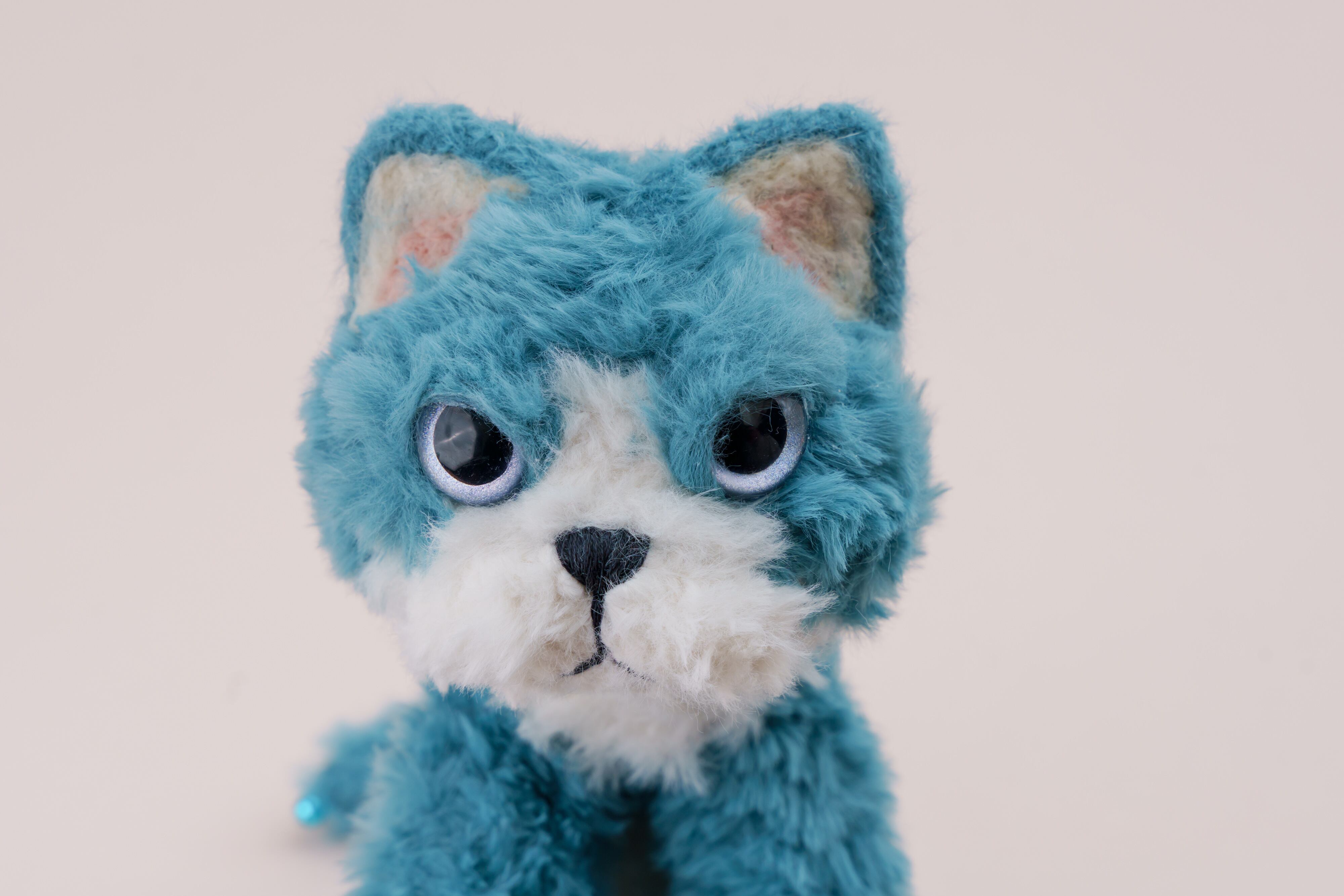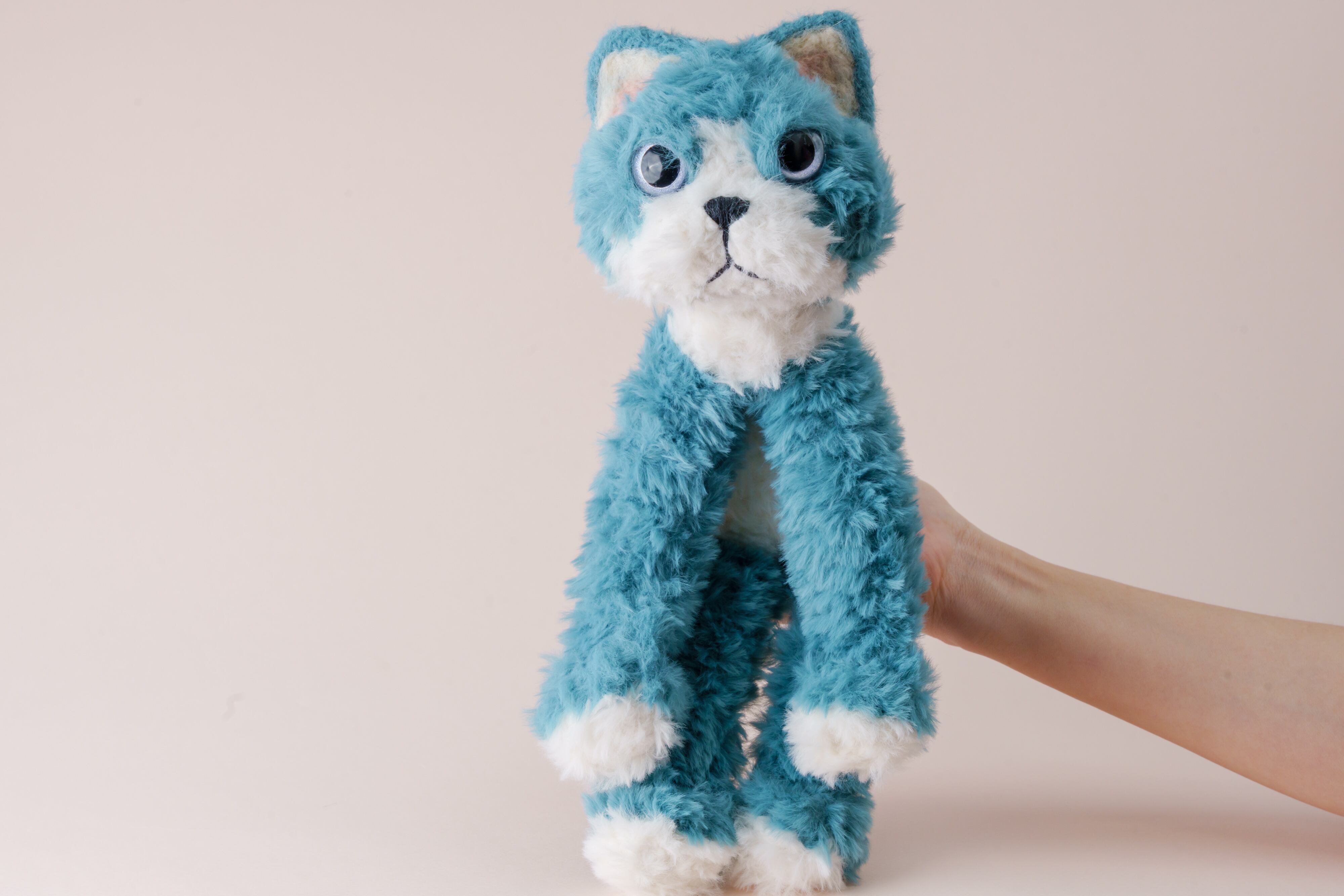 癒されネコのあみぐるみ<middleサイズ>青いネコのシエロ